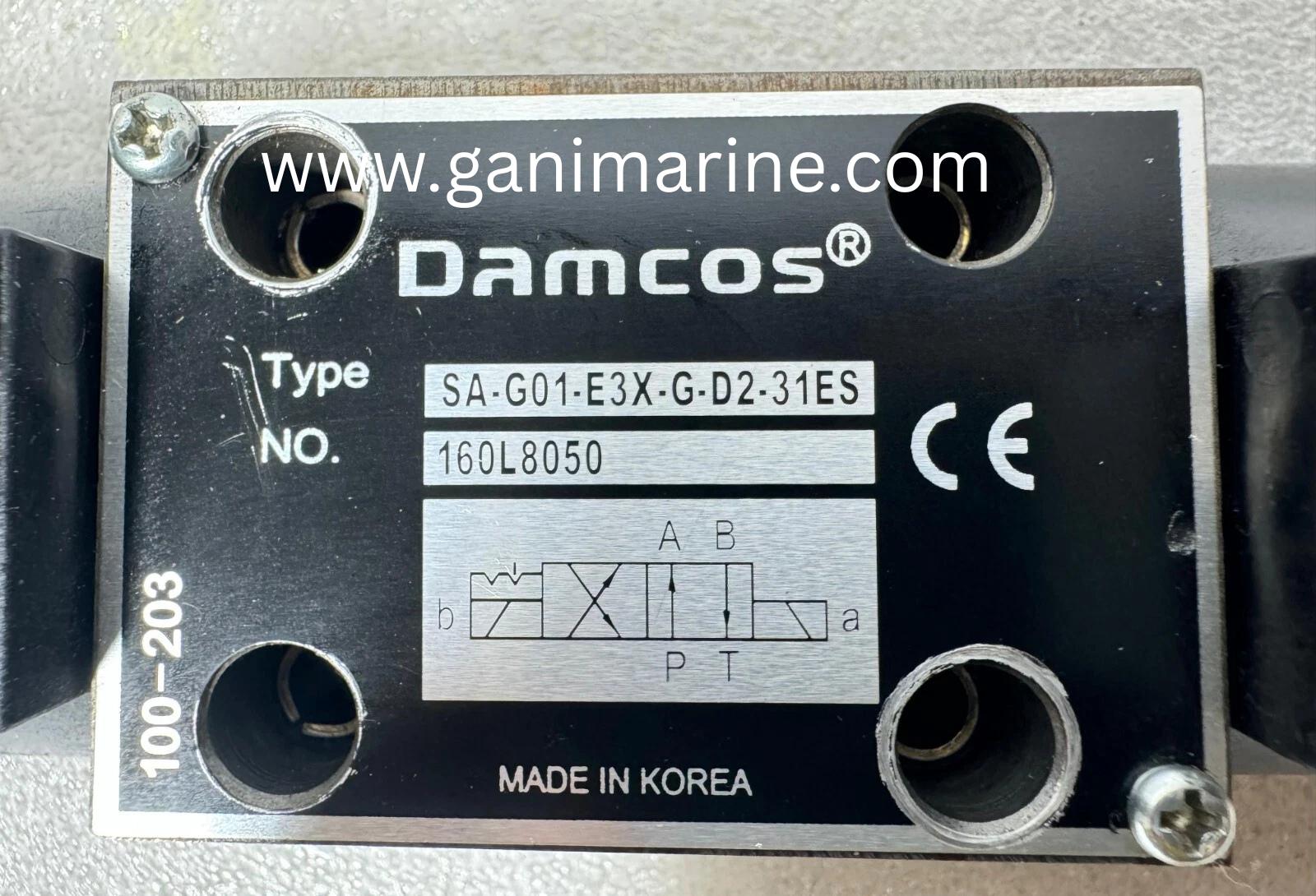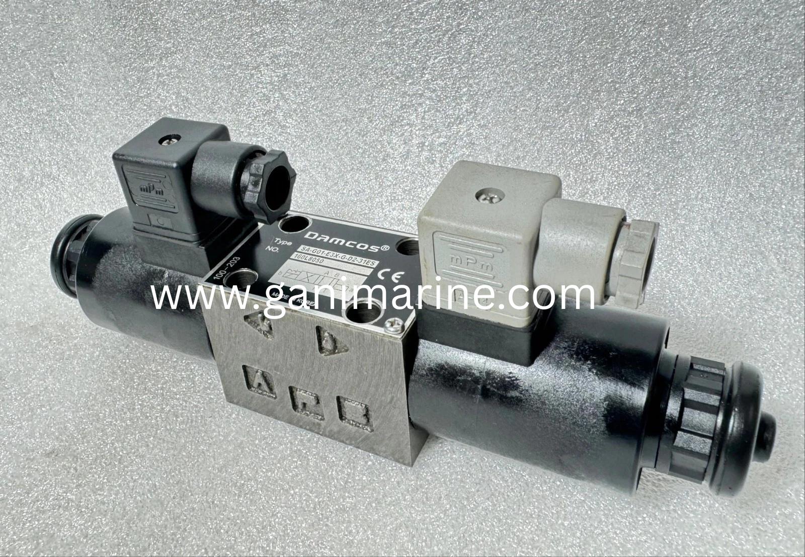 The Damcos / Danfoss Solenoid Valve SA-G01-E3X-G-D2-31ES (No. 160L8050) is a 4-way, 2-position directional control valve designed for marine, offshore, and industrial hydraulic systems. Built to handle pressures up to 350 bar, it features dual solenoids with mechanical detent, ensuring the spool remains locked in extreme positions when solenoids are de-energized. With 24V DC operation, this solenoid valve provides reliable and precise hydraulic flow control, ideal for shipboard, offshore, and heavy-duty hydraulic equipment. Gani Marine supplies genuine Damcos and Danfoss solenoid valves worldwide with fast delivery and technical support.