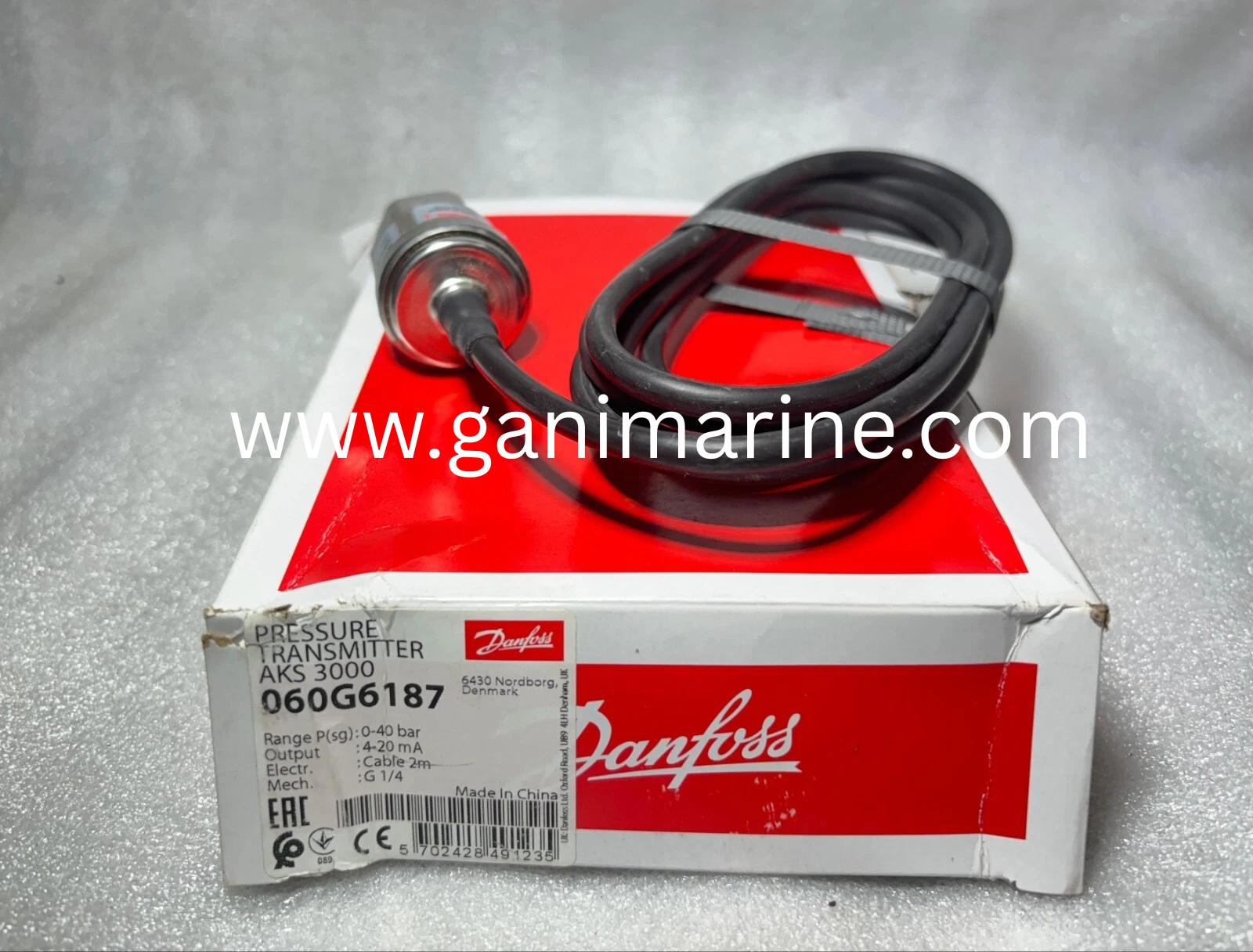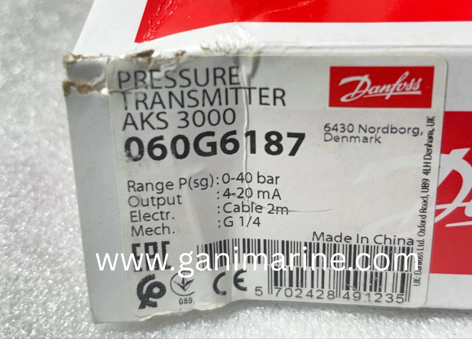The Danfoss AKS 3000 Pressure Transmitter (060G6187) is designed for refrigeration, HVAC, marine, and industrial hydraulic systems. With a measuring range of 0–40 Bar, an output of 4–20 mA, and supply voltage 9–32V DC, it ensures highly accurate and reliable pressure monitoring. Gani Marine supplies genuine Danfoss AKS sensors and transmitters worldwide for heavy-duty applications.