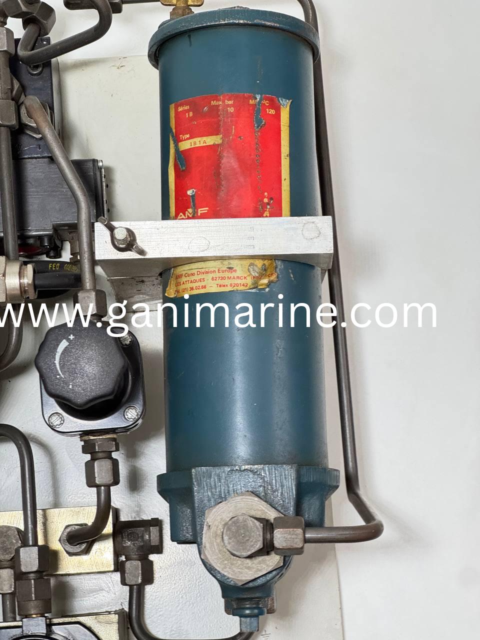 Hydraulic Control System Panel equipped with FISHER Type 546 Transducer, FAIRCHILD Catalog 20832, AMF Type 1B1A Regulator, and MECMAN 349/1 MOD C Pneumatic Module. Designed for marine, offshore, oil & gas, industrial automation and ship machinery control. High-quality, calibrated components for precision control, pressure regulation, signal conversion, and actuator operation. Supplied worldwide by GANI MARINE, a trusted global supplier of hydraulic and pneumatic control equipment.
