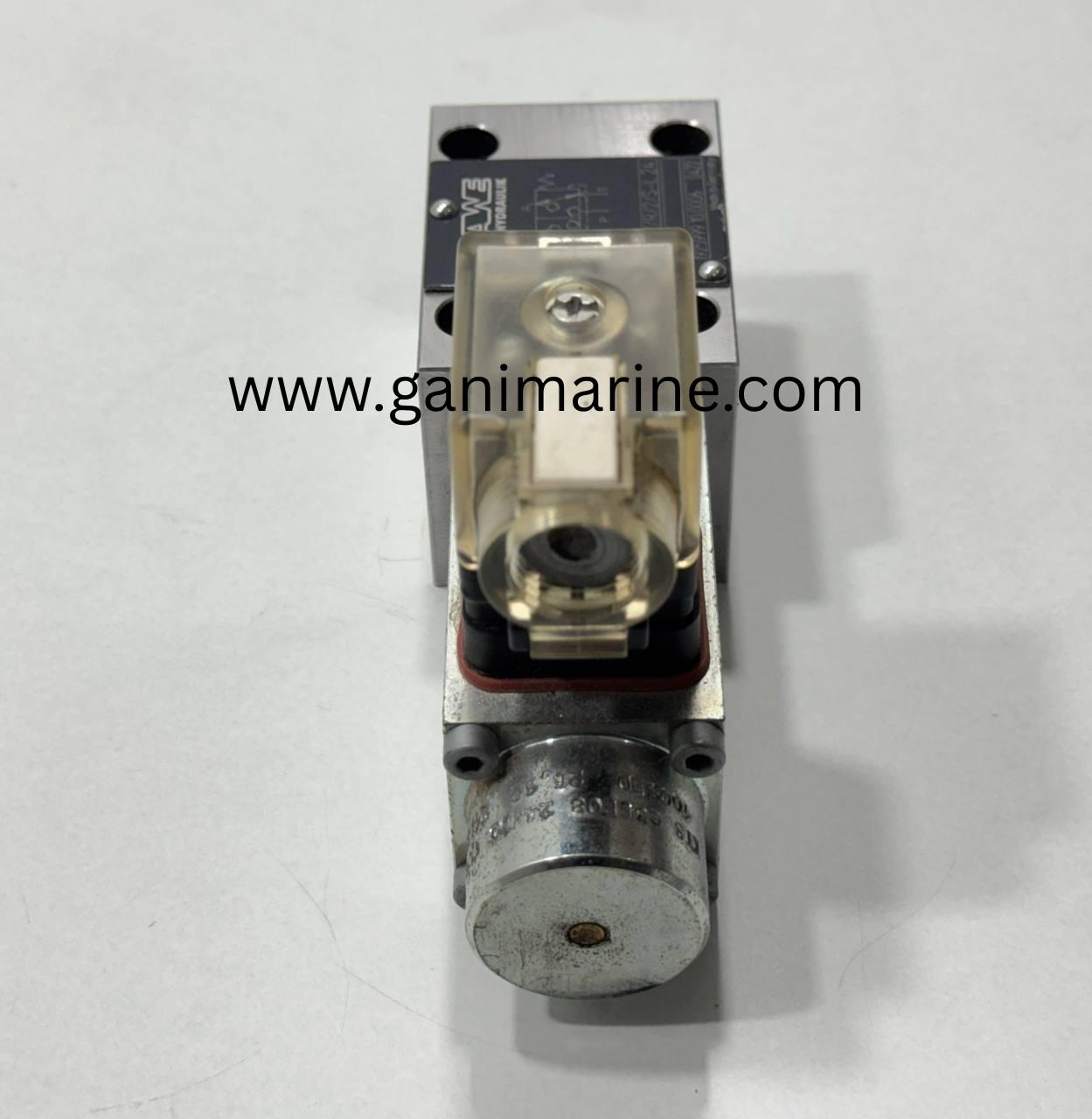 •When 24V DC is applied, the solenoid shifts the valve, directing pressure (P) to port (A) or venting A to tank (T).