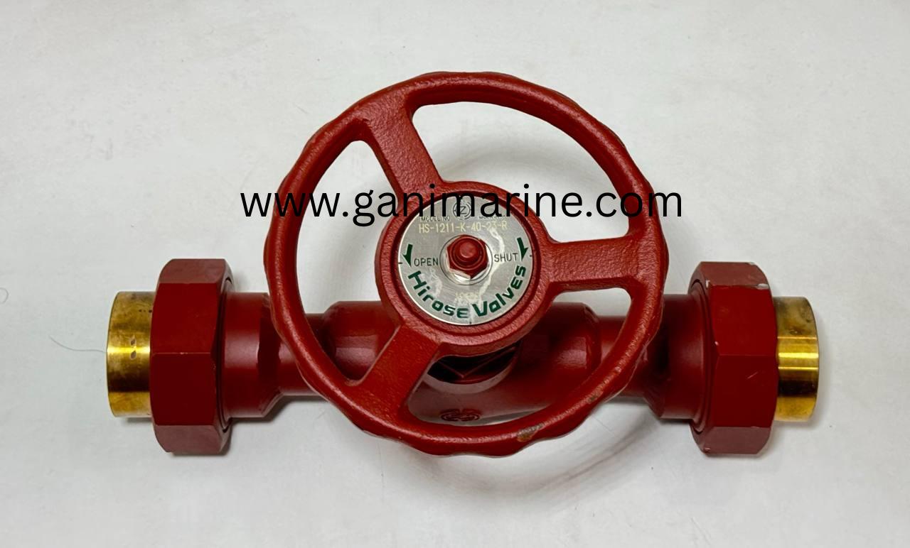 The Hirose Stop Valve HS-1211-K-40-23-R, manufactured by Hirose Valve Industry Co., Ltd. Japan, is a heavy-duty manual shutoff valve designed for precise regulation or complete isolation of fluid flow. Built with a robust cast iron/steel body and brass end fittings for corrosion resistance, this valve ensures long-lasting performance in marine, offshore, firewater, and industrial hydraulic systems.