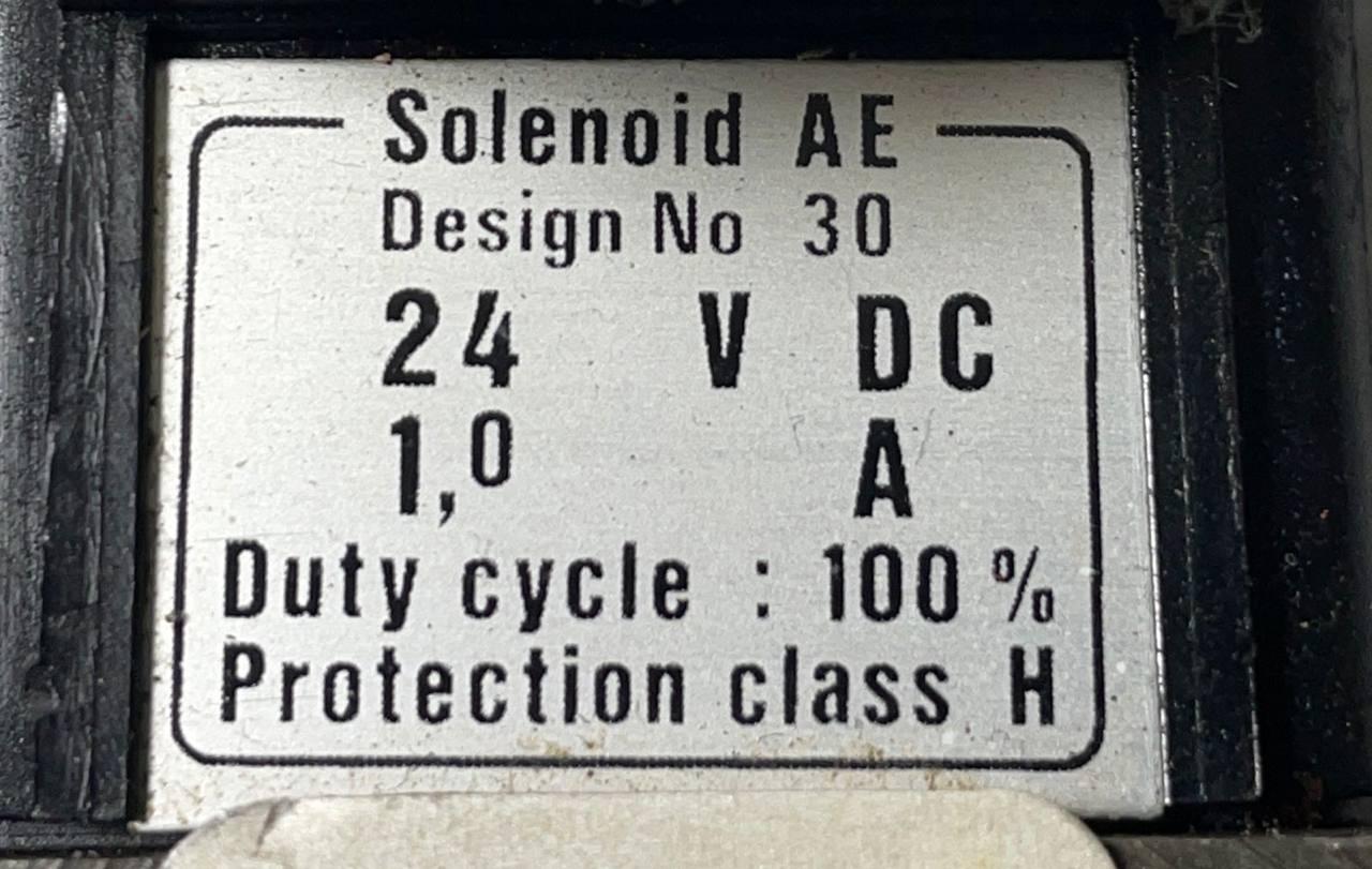 Equipped with a 24V DC solenoid (AE type), rated at 1.0 A with 100% duty cycle, this valve ensures continuous and reliable operation under demanding environments.