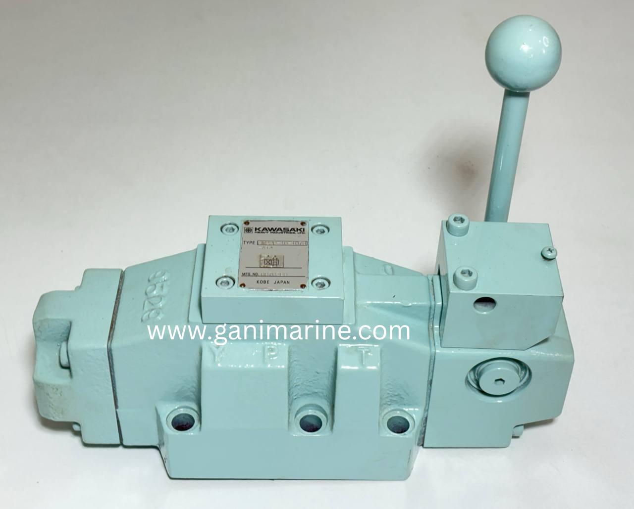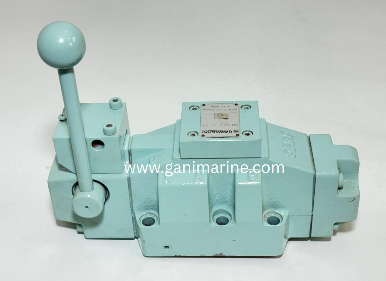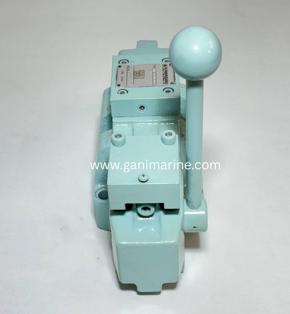 The Kawasaki DM2P-10-107B-A14 is a manually operated directional control valve from Kawasaki Heavy Industries, Kobe Japan, designed for reliable hydraulic flow direction control in demanding marine, offshore, industrial, and heavy-duty hydraulic systems. Built with a robust cast body and corrosion-resistant light blue epoxy coating, this DM-series lever valve ensures dependable manual operation where electrical or proportional control is not required.
