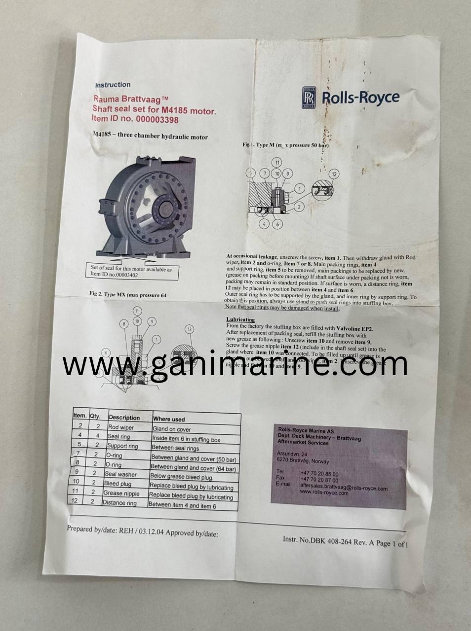 Ideal for ship operators, offshore maintenance teams, and hydraulic service providers, this seal kit guarantees original Rolls-Royce quality and compliance with OEM specifications.