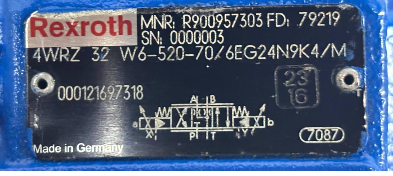 The Bosch Rexroth 3DREP 6 C-20=25EG24N9K4/M=00 is a proportional pressure reducing valve designed for precise hydraulic pressure regulation and control in advanced hydraulic circuits. This unit is supplied with a mounting block (Type W6-520-70/6EG24N9K4/M) for easy installation and direct integration into system manifolds.