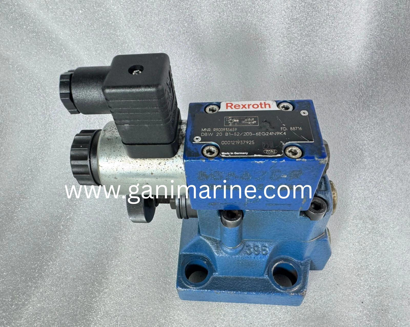 The Bosch Rexroth DBW20 B1-52/200-6EG24N9K4 is an electro-hydraulic pressure relief valve (pilot-operated type) designed to maintain constant system pressure and protect hydraulic equipment from overload. Operating at up to 200 bar and 24 V DC solenoid control, this Rexroth valve ensures stable, low-hysteresis pressure regulation in marine, offshore, and industrial hydraulic systems. Supplied worldwide by GANI MARINE EXPORTER, your trusted source for genuine Rexroth hydraulic components.