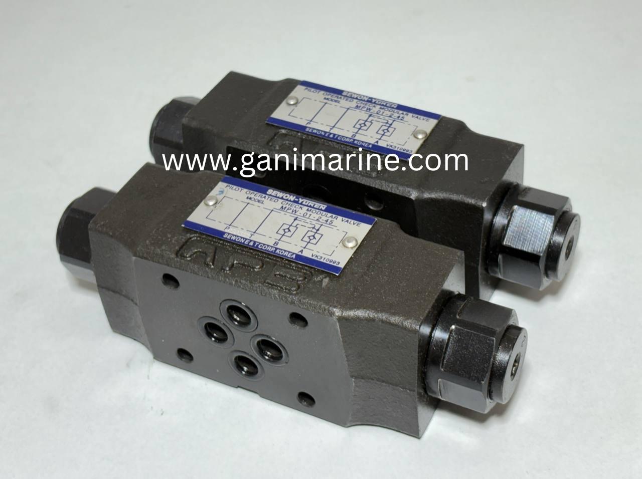 The Yuken MPW-01-2-45 check valve provides secure load retention and pilot-controlled release, crucial in marine hydraulic circuits where stability and reliability are paramount.