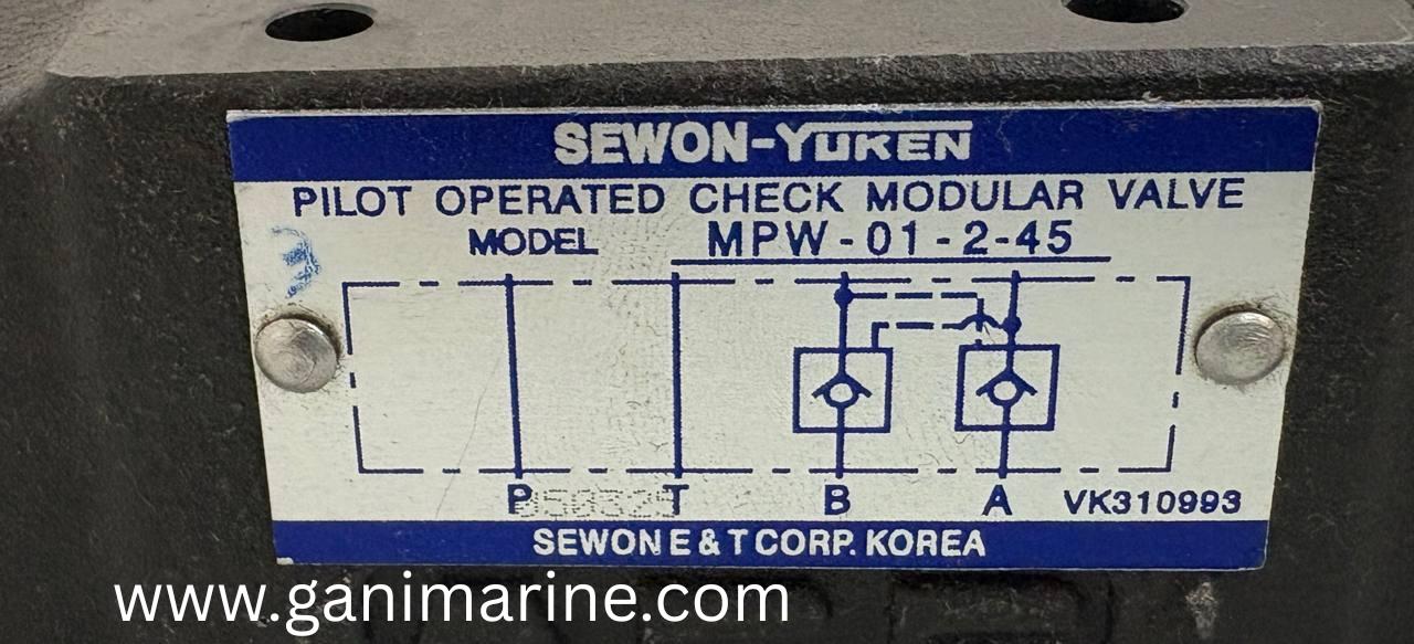 The Yuken MPW-01-2-45 valve allows hydraulic flow from the pump to the actuator and holds pressure in the actuator until pilot pressure is applied. This ensures that load or pressure is maintained without unintended motion — a vital feature for marine deck equipment, cranes, press machines, and hydraulic cylinders.