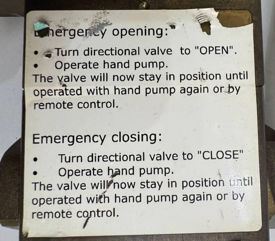 Manufactured by Damcos (an Emerson brand), this control block is typically installed in seawater cooling systems, ballast systems, and overboard discharge lines.