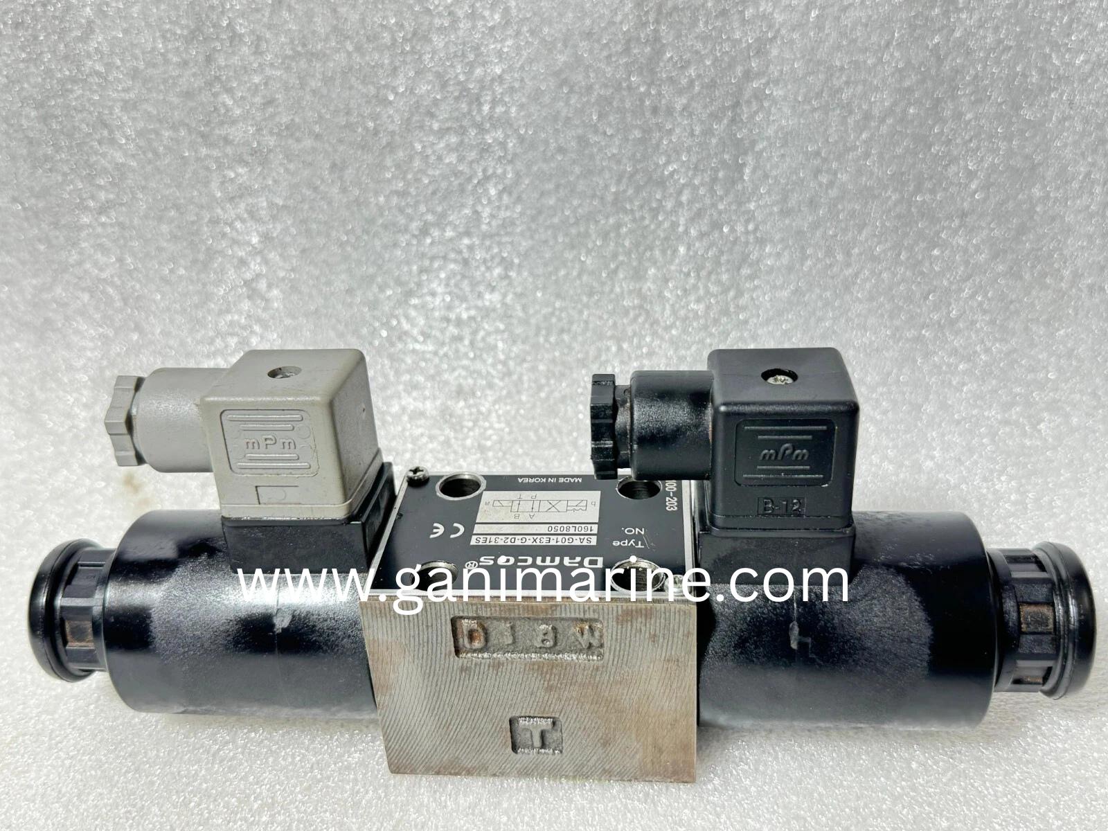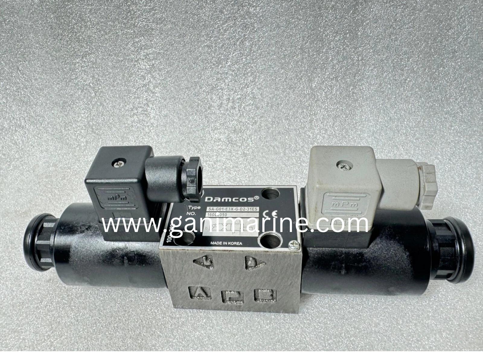 The Damcos / Danfoss Solenoid Valve SA-G01-E3X-G-D2-31ES (No. 160L8050) is a 4-way, 2-position directional control valve designed for marine, offshore, and industrial hydraulic systems. Built to handle pressures up to 350 bar, it features dual solenoids with mechanical detent, ensuring the spool remains locked in extreme positions when solenoids are de-energized. With 24V DC operation, this solenoid valve provides reliable and precise hydraulic flow control, ideal for shipboard, offshore, and heavy-duty hydraulic equipment. Gani Marine supplies genuine Damcos and Danfoss solenoid valves worldwide with fast delivery and technical support.