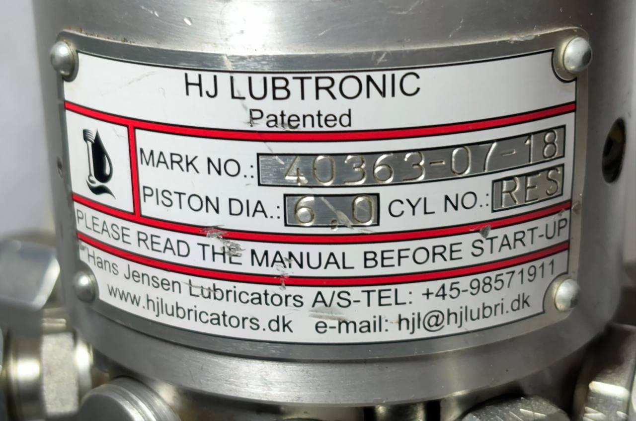 The Hans Jensen Lubtronic Hydraulic System (Mark No. 40363-07-18) is a precision-engineered cylinder unit designed for hydraulic lubrication systems in large marine diesel engines.