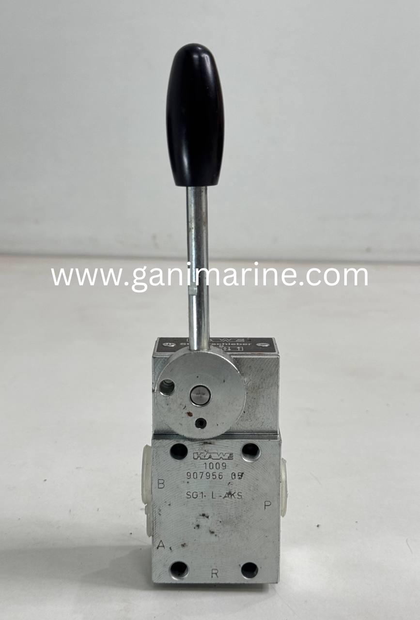 HAWE SG1 L-AKS Directional Spool Valve (907956 05) is a corrosion-resistant hydraulic control valve designed for marine, offshore, shipbuilding, cranes, and mobile machinery. With a 400 bar pressure rating, 20 L/min flow, and lever operation (4/3 or 4/2 way), this HAWE valve ensures reliable hydraulic fluid control in harsh environments. Available worldwide from Gani Marine Exporter – Global Marine Hydraulic Supplier.