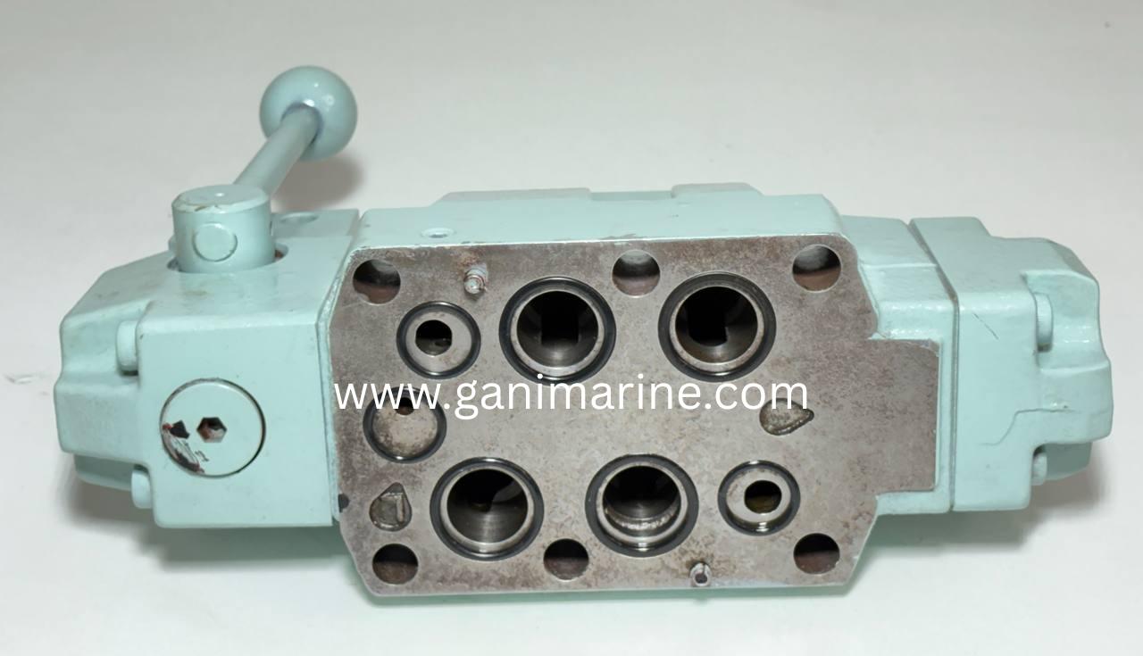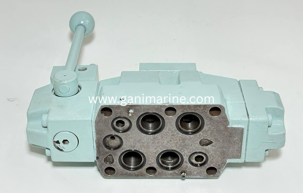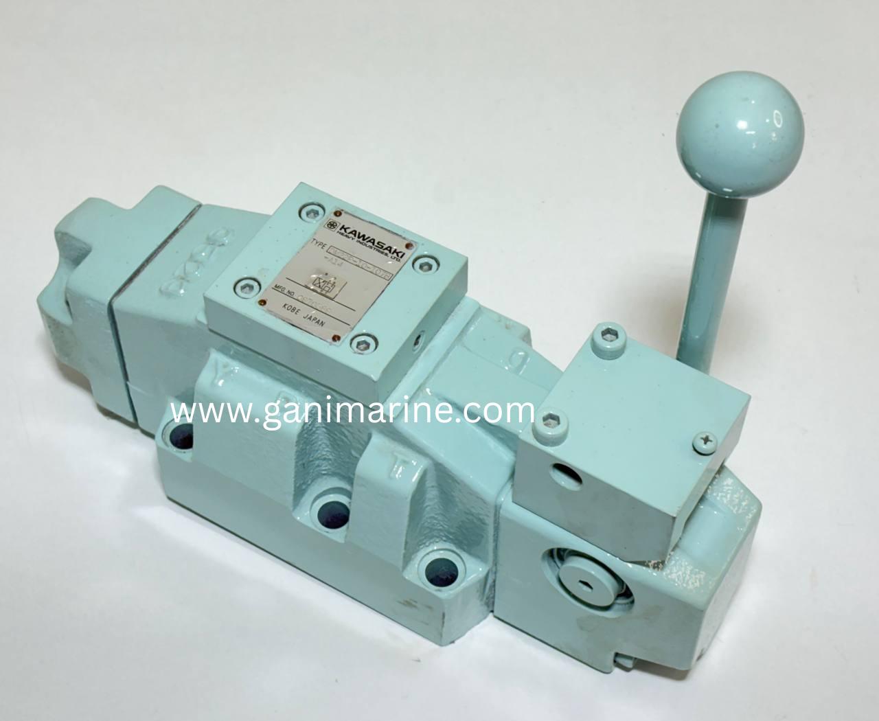 The Kawasaki DM2P-10-107B-A14 is a manually operated directional control valve from Kawasaki Heavy Industries, Kobe Japan, designed for reliable hydraulic flow direction control in demanding marine, offshore, industrial, and heavy-duty hydraulic systems. Built with a robust cast body and corrosion-resistant light blue epoxy coating, this DM-series lever valve ensures dependable manual operation where electrical or proportional control is not required.
