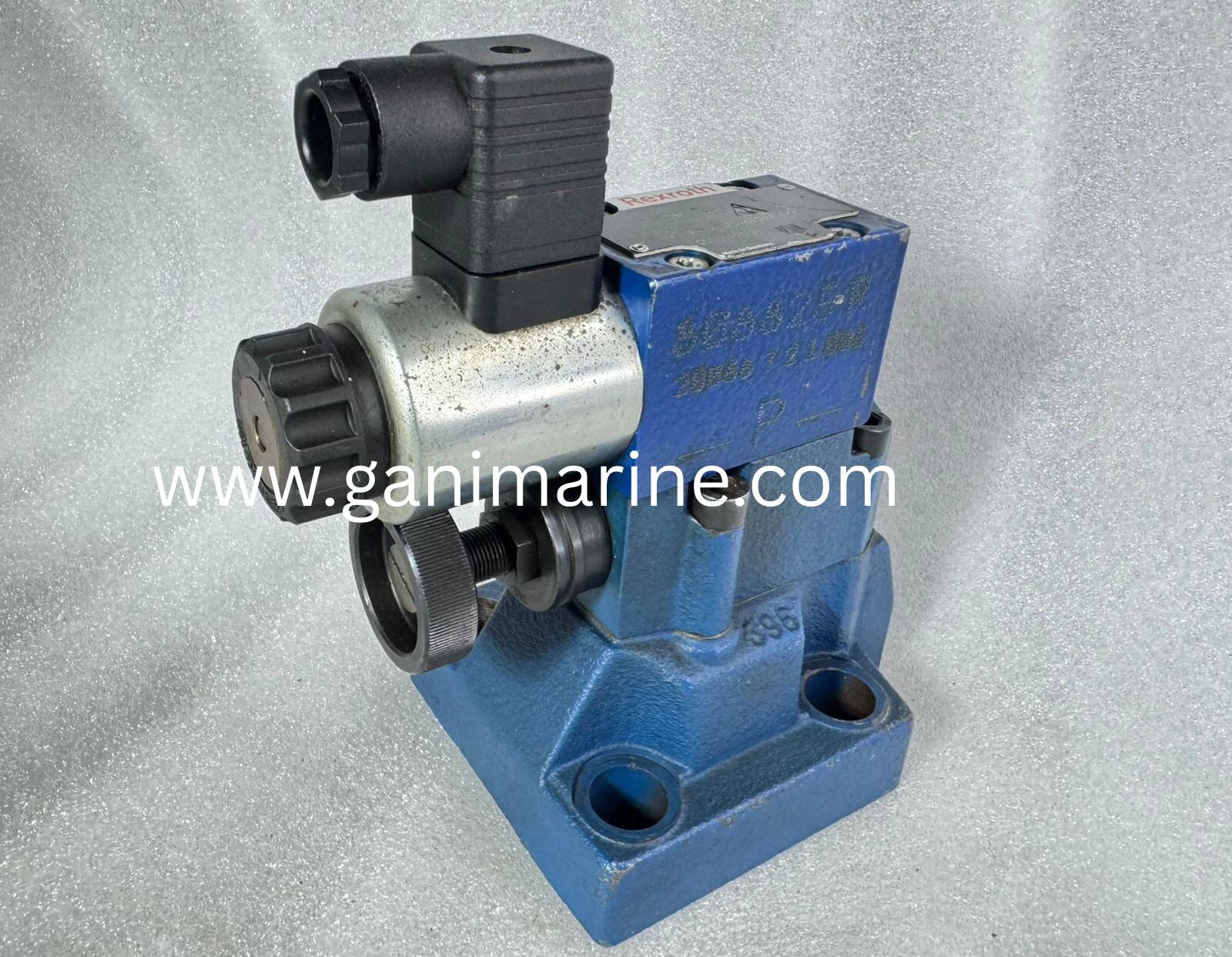 The Bosch Rexroth DBW20 B1-52/200-6EG24N9K4 is an electro-hydraulic pressure relief valve (pilot-operated type) designed to maintain constant system pressure and protect hydraulic equipment from overload. Operating at up to 200 bar and 24 V DC solenoid control, this Rexroth valve ensures stable, low-hysteresis pressure regulation in marine, offshore, and industrial hydraulic systems. Supplied worldwide by GANI MARINE EXPORTER, your trusted source for genuine Rexroth hydraulic components.