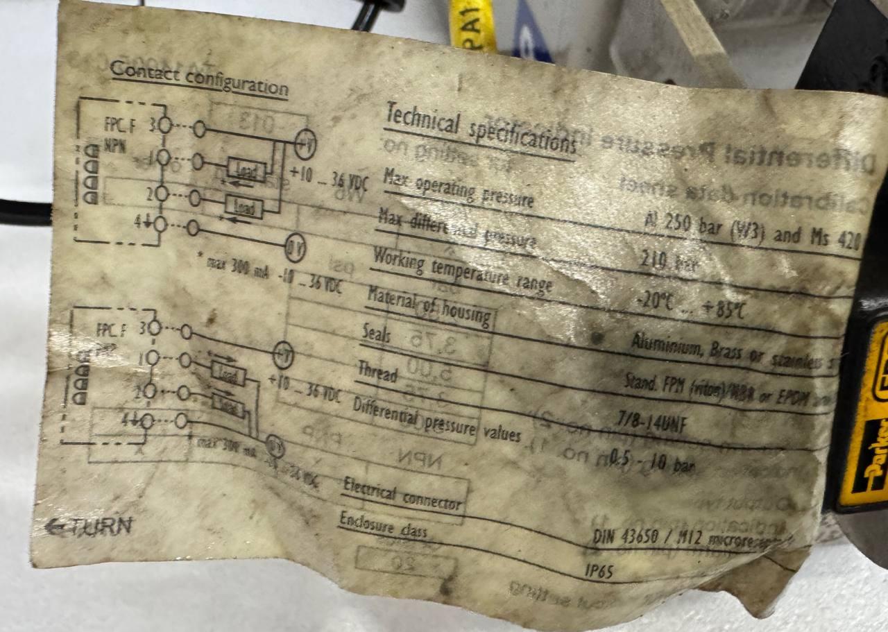 The “NODE 33” tag and Presserv corrosion inhibitor marking indicate this unit was preserved as part of a mothballed marine thruster control skid.